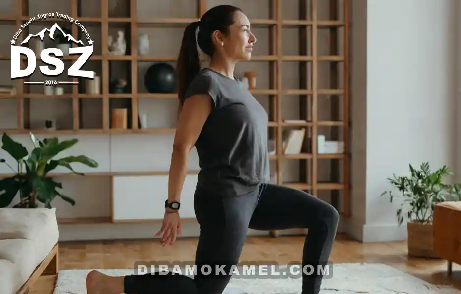 لانژ: این حرکت عضلات ران، باسن و ساق پا را تقویت میکند و به تعادل و هماهنگی بدن نیز کمک میکند.