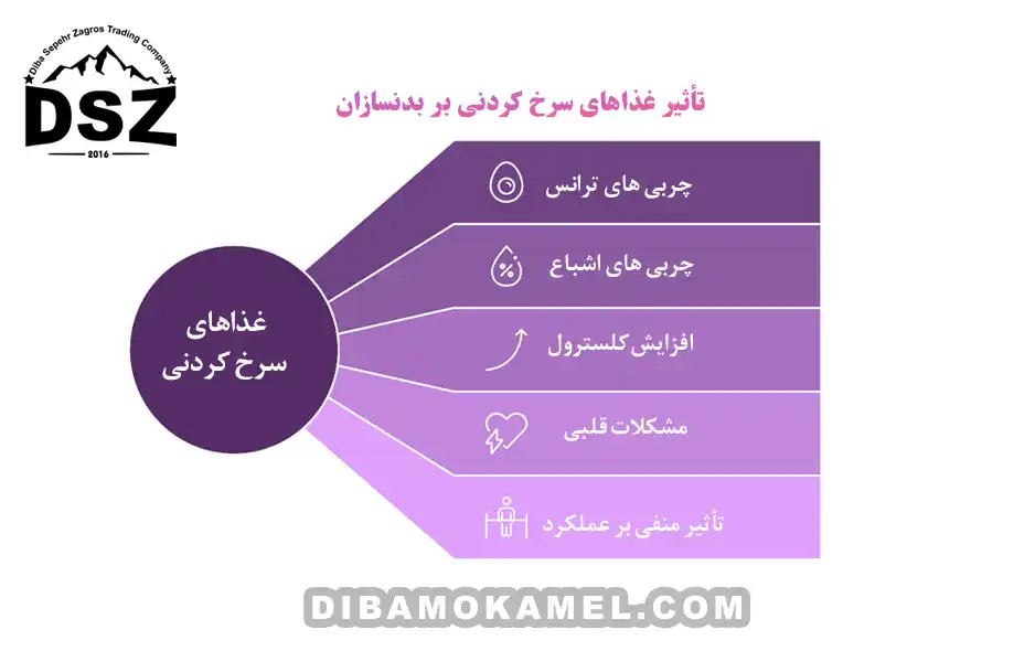 غذاهای سرخ کردنی معمولاً حاوی چربی های ترانس و اشباع هستند که می توانند به افزایش کلسترول و مشکلات قلبی منجر شوند. این نوع چربی ها برای بدنسازان مضر هستند و می توانند بر روی عملکرد ورزشی تأثیر منفی بگذارند.