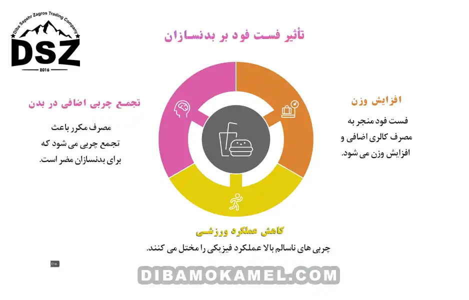 - افزایش وزن: مصرف فست فود میتواند به افزایش وزن و چربی بدن منجر شود.