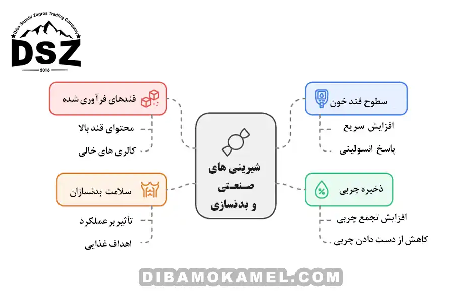 - دیابت نوع 2: قندهای بالا در این غذاها میتوانند خطر ابتلا به دیابت نوع 2 را افزایش دهند.